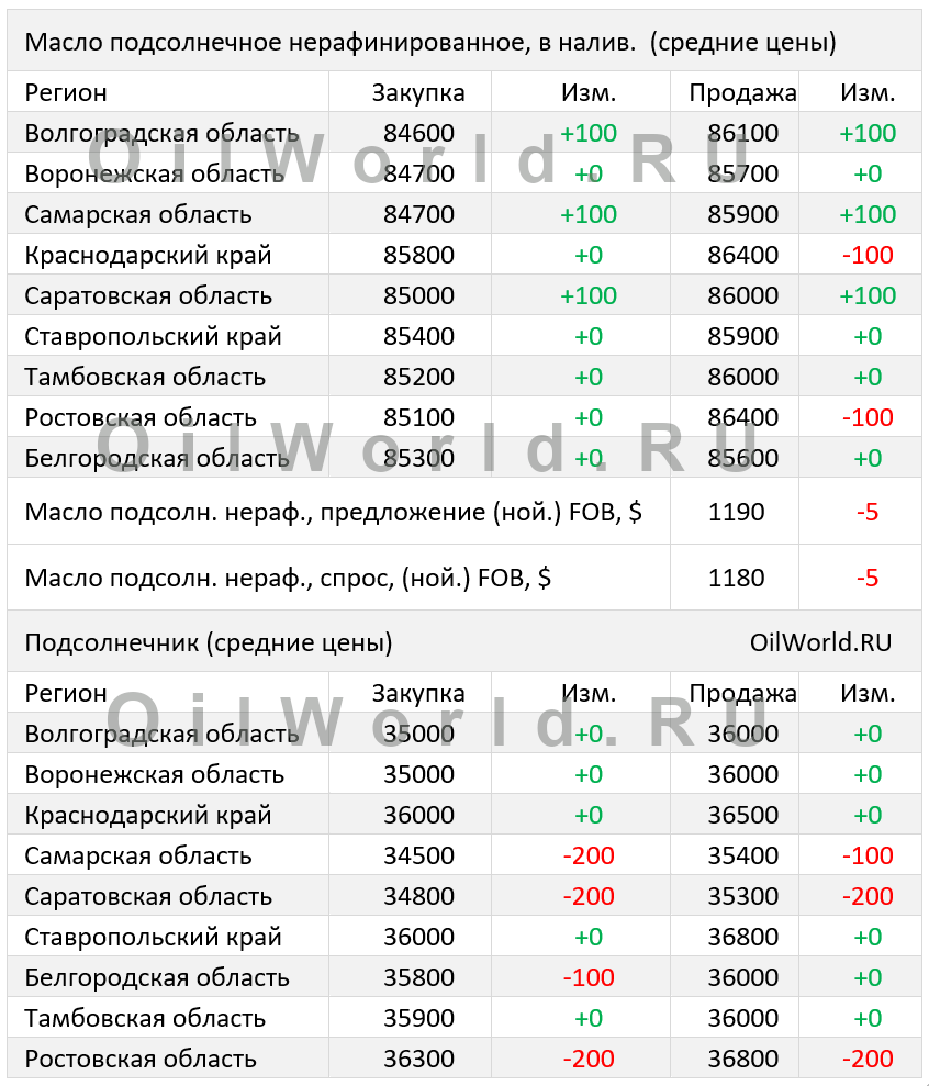 Россия. Цены на подсолнечник и масло 44-45 неделя 2025 г.