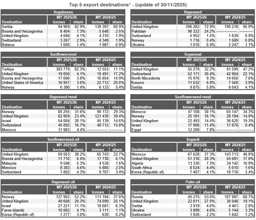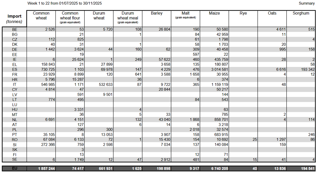 Однако Комиссия заявила, что данные по экспорту Франции с начала 2024 календарного года и Ирландии и Болгарии с начала 2023/24 маркетингового года неполные. Данные по экспорту и импорту Польши отсутствуют с октября 2025 года, говорится в сообщении.