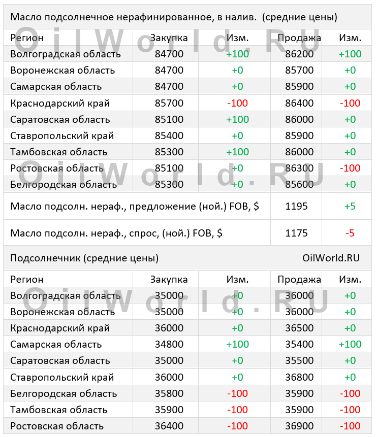 | Регион | Закуп. | Изм. | Прод. | Изм. |