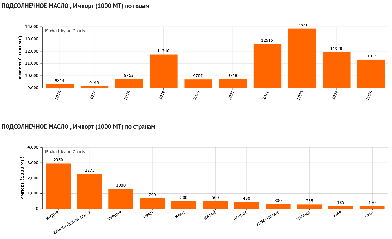 В этом месяце мировое производство масличных культур увеличилось благодаря соевым бобам из Бразилии и Парагвая. Мировая торговля масличными культурами увеличилась за счет роста экспорта рапса из Канады и подсолнечника из ЕС, что более чем компенсировало снижение экспорта рапса из Австралии. Мировой переработчик вырос за счет увеличения переработки соевых бобов из Бразилии и Парагвая.