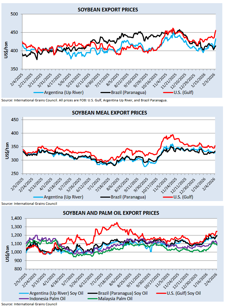 Недавние закупки сои Китаем, ослабление доллара США и ожидания благоприятной политики в области биотоплива подтолкнули цены на сою в США к двухмесячному максимуму. Тем временем, благоприятные отчеты об урожае и погодные условия в Бразилии укрепили ожидания рекордного урожая сои, увеличив разрыв в ценах между США и Бразилией. Цены на соевый шрот оставались стабильными, несмотря на увеличение объемов переработки, поскольку снижение цен на сою в Бразилии сдерживало рост цен на шрот.
