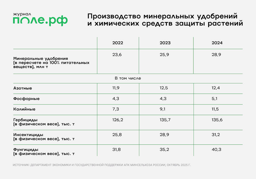Рынок средств защиты растений — один из самых стабильных. В Российском союзе производителей химических средств защиты растений (РСП ХСЗР) прогнозируют, что потребление пестицидов в России по итогам 2025 года достигнет 250 тыс. тонн против 230 тыс. тонн годом ранее. Порядка 71% рынка занимают российские производители, около 8% — это производство по схеме толлинга, 21% — импорт.