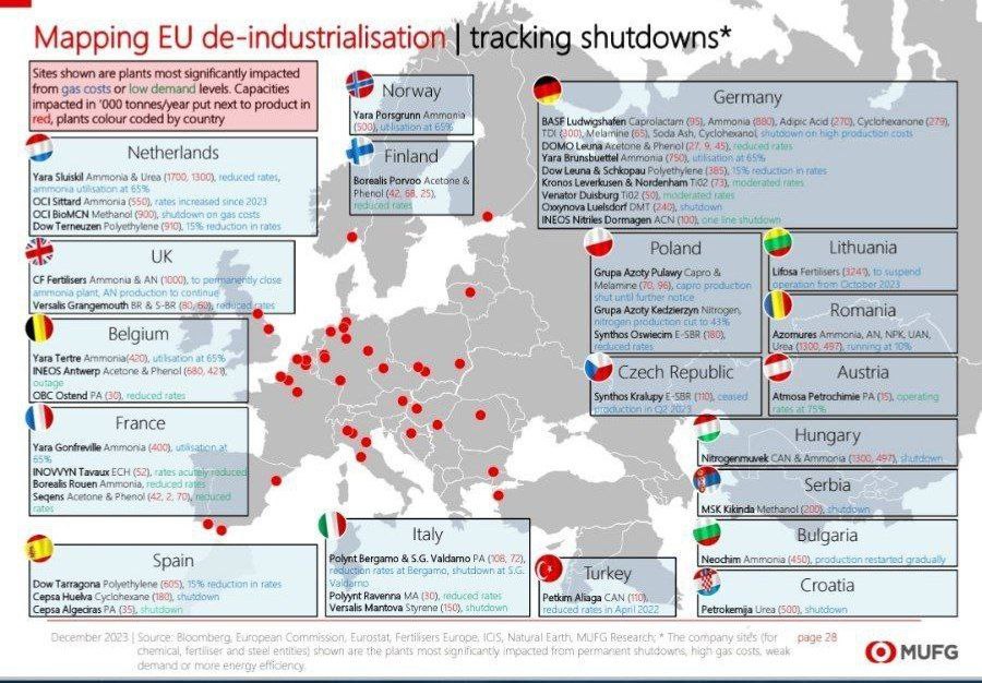 Свои заводы удобрений европейцы закрыли.
