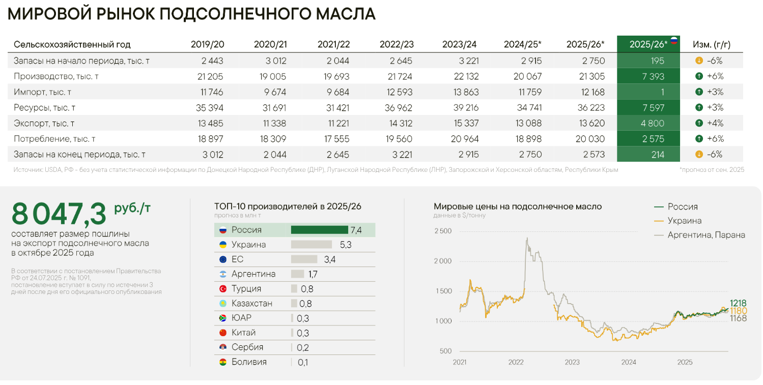 В краткосрочной перспективе цены на подсолнечное масло могут оставаться на повышенном уровне. Для внутреннего рынка это ограничивает потенциал снижения цен на подсолнечник нового урожая.