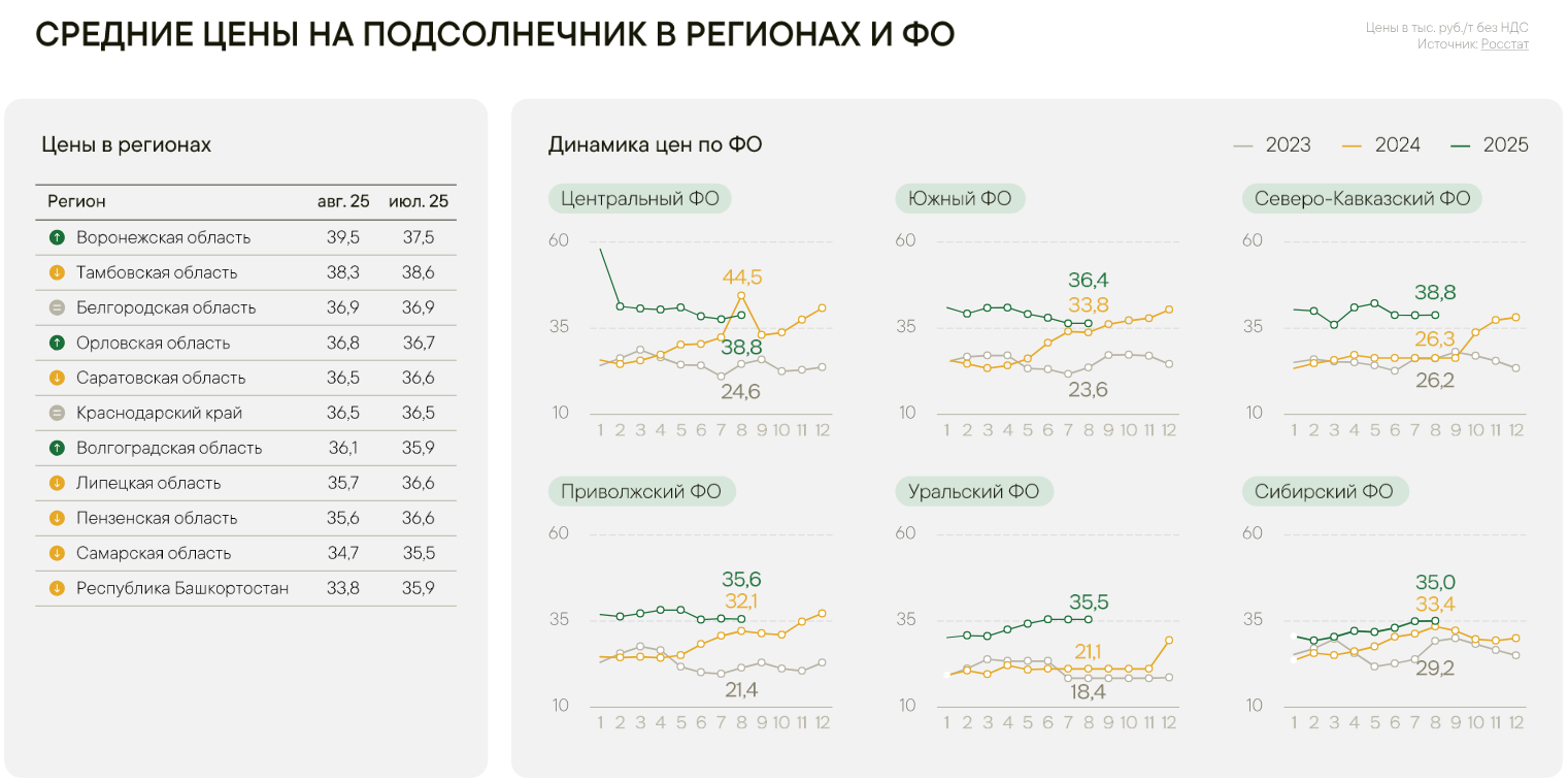 Цены в большинстве регионов снижаются — сезонное увеличение предложения по мере уборки урожая постепенно корректирует стоимость.