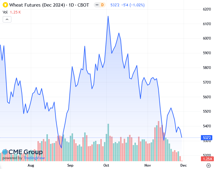 По словам аналитиков, пшеница получила некоторую поддержку на фоне новостей о том, что Россия планирует сократить экспортную квоту на 2025 год и повысить экспортные пошлины на пшеницу в рамках мер правительства по сдерживанию инфляции.