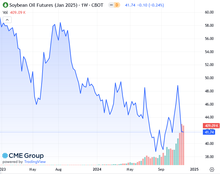 По данным EIA, объемы использования соевого масла для производства биотоплива в США в сентябре сократились до 1076 млн фунтов по сравнению с 1217 млн фунтов в августе.