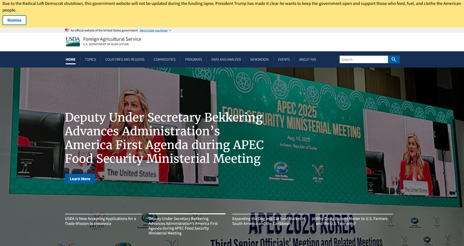 На баннере на сайте Министерства сельского хозяйства США (USDA) написано: