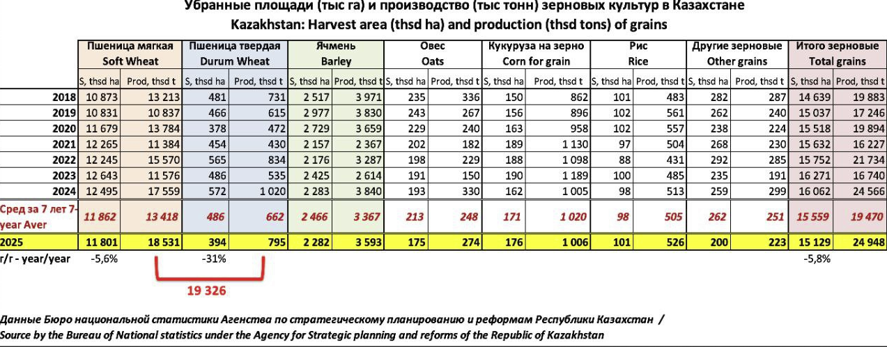 Общая уборочная площадь всей пшеницы составила 12 195 тыс га (-6,7%), в т.ч: