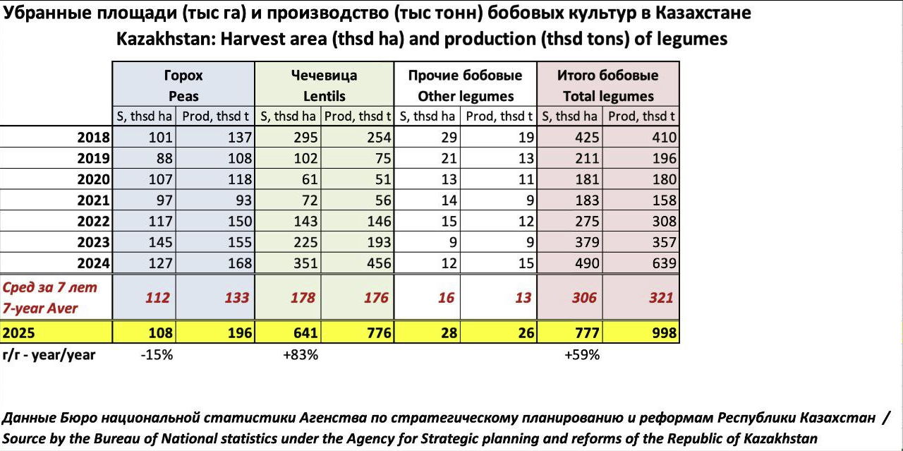 Собран абсолютно рекордный за всю историю урожай бобовых культур - 998 тыс т (+56%), с площади 777 тыс га (+59% г/г), в т ч: