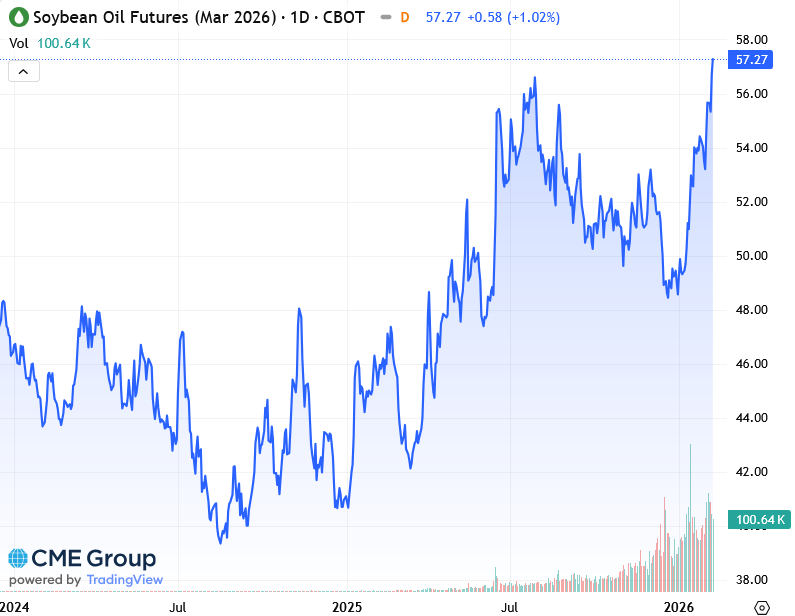 Дополнительную поддержку рынку также оказали обновление налоговых льгот для производителей биодизеля в США, стимулирующих использование сырья североамериканского происхождения. На этом фоне соевый шрот подешевел почти на 2%, тогда как USDA сообщило о новых экспортных продажах американской сои в Китай.