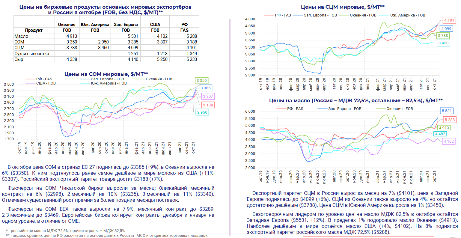 Цены на сухое молоко в октябре росли во всех экспортирующих регионах мира, за исключением Южной Америки. В отличие от дорогого СОМ, достаточно дешёвым, ‘сохраняющим потенциал роста, остаётся СЦМ из Океании ($3788).