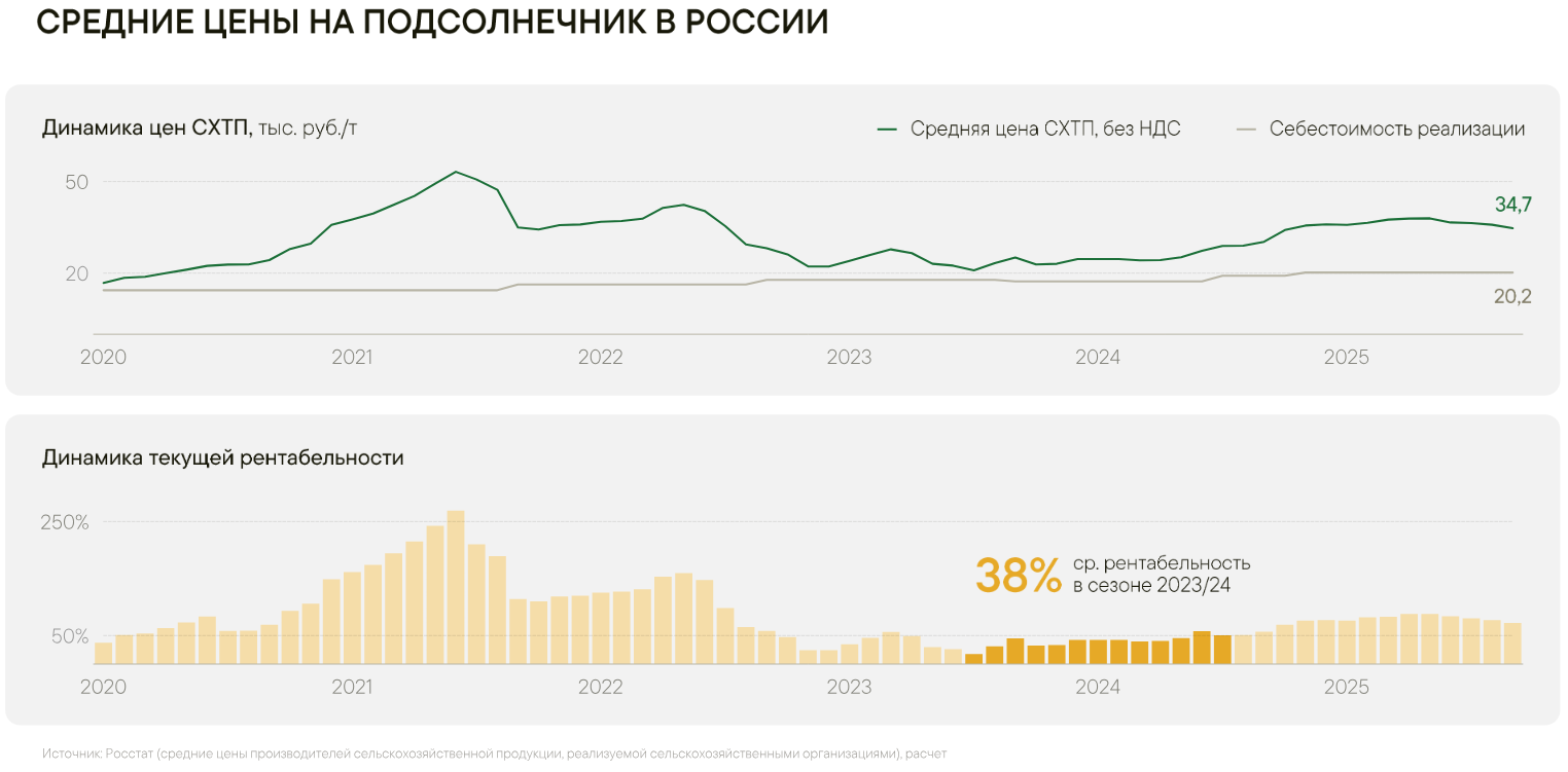На внутреннем рынке цены относительно стабильны. Основные драйверы — уборка урожая и экспортные условия, особенно для масличных культур. К концу сентября собрано около 6,5 млн га масличных, урожайность по большинству культур выше прошлогодней, кроме подсолнечника на юге, где засуха снижает показатели.