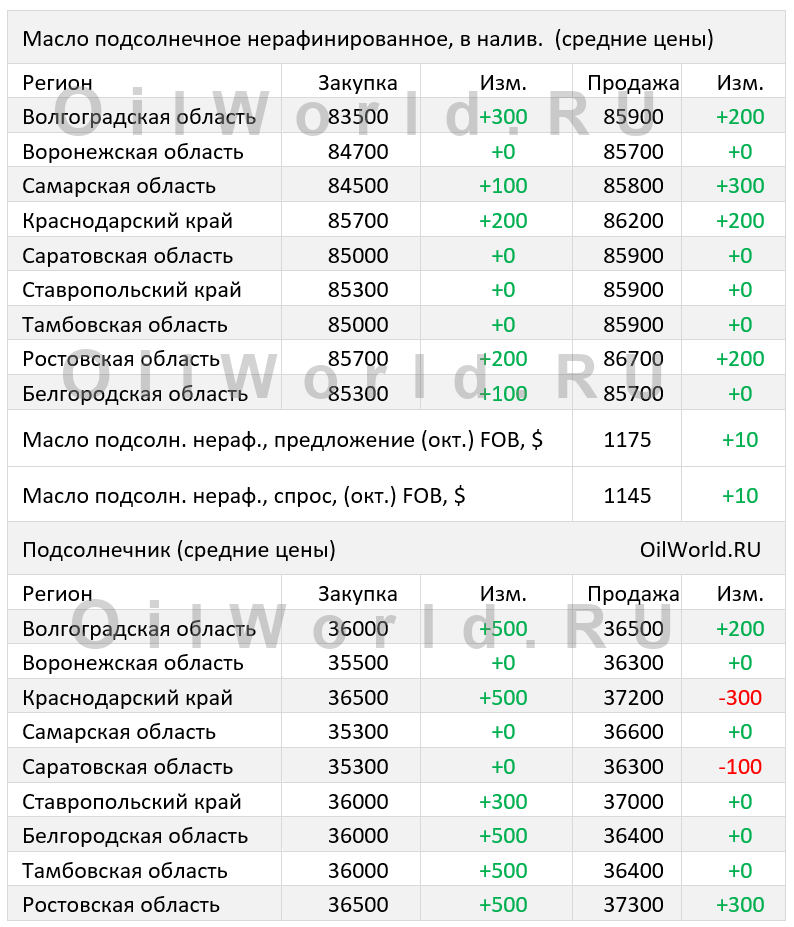 Россия. Цены на подсолнечник и масло 39-40 неделя 2025 г.