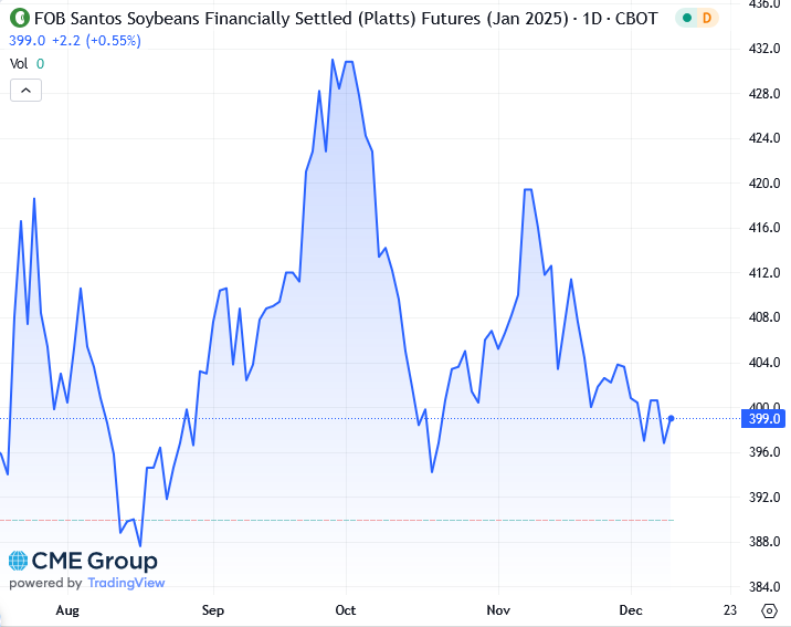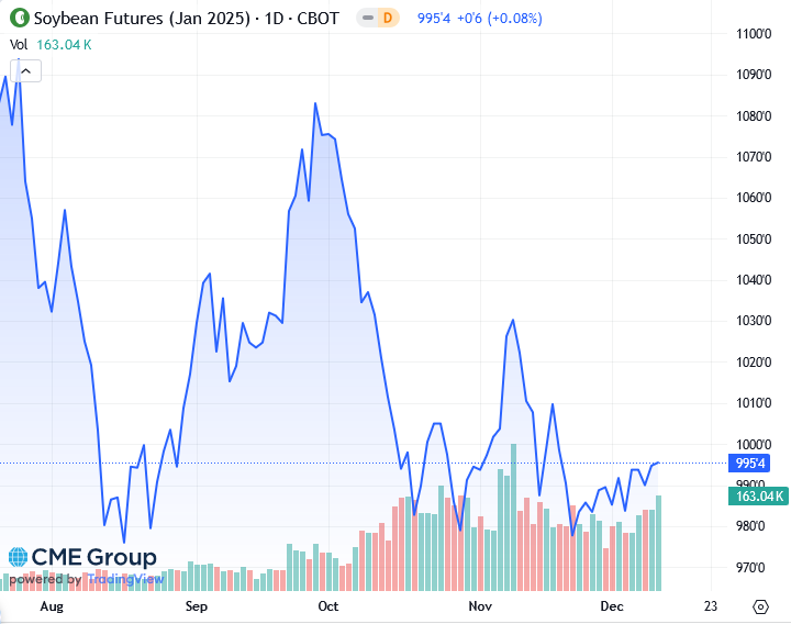 Министерство сельского хозяйства США сообщило, что конечные запасы сои в США в 2024–2025 годах составят 470 миллионов бушелей, что не изменилось по сравнению с ноябрем и соответствует торговым ожиданиям.