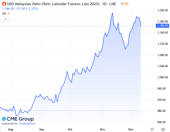Министерство сельского хозяйства США также повысило оценку экспорта кукурузы в 2024–2025 годах до 2,475 млрд бушелей по сравнению с ноябрьской оценкой в 2,325 млрд бушелей.