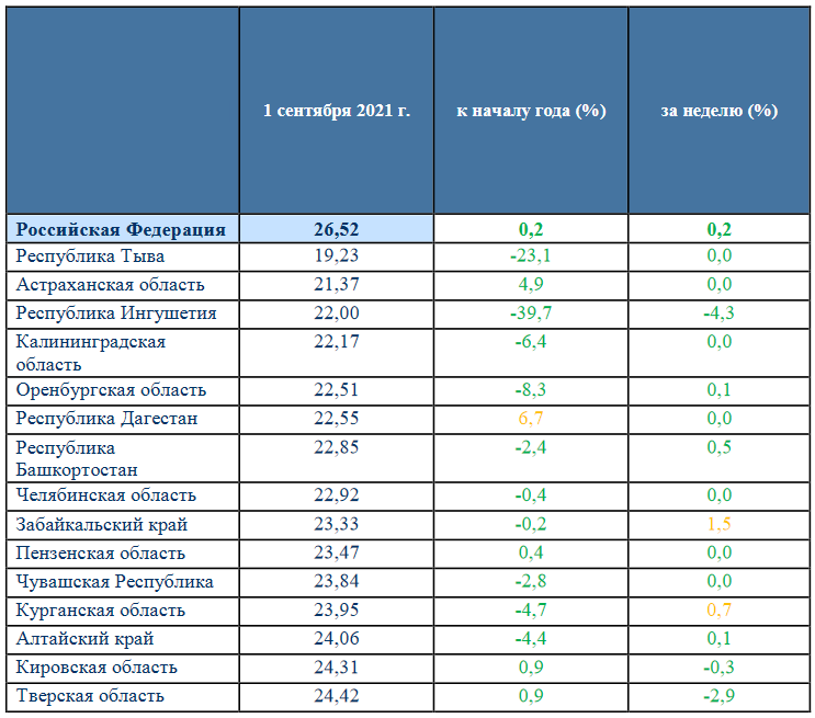 | Регион | Закуп. | Изм. | Прод. | Изм. |